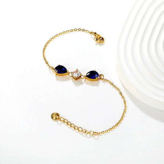 ✨💎 Wholesale Teardrop & Round Zircon Bracelet | 7x9mm White/Blue Zirconia 18+3cm Gold Plated Chain