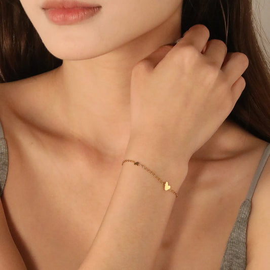 Bulk Asymmetric Heart Charm Bracelet | 316L Gold Stainless Steel w/ 5.8mm Crooked + 3.7mm Hearts (16+5cm) - Wholesale Boho Trend