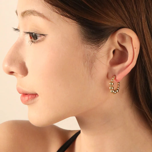 Wholesale Gold Stainless Steel Open Hoop Earrings | 5mm Half-Round Bead Detail | 14.1mm Spring Lever Back | Bulk Fashion Earrings for Retailers