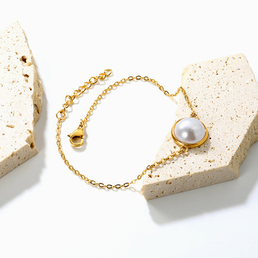 Stainless Steel Steel-Colored 12mm&14mm Round Bracelets with Half Pearl - 16+3cm, Wholesale Offer
