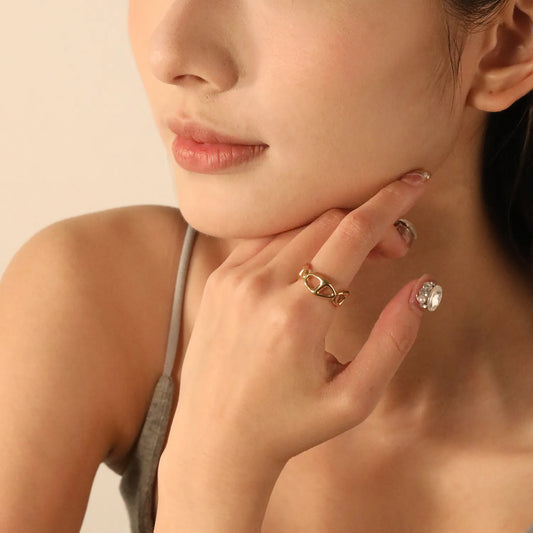 11.8mm Gold Stainless Steel Open Ring - Adjustable (2.8g) - Bulk Wholesale Jewelry (10/50/100pcs) - Hypoallergenic Statement Ring