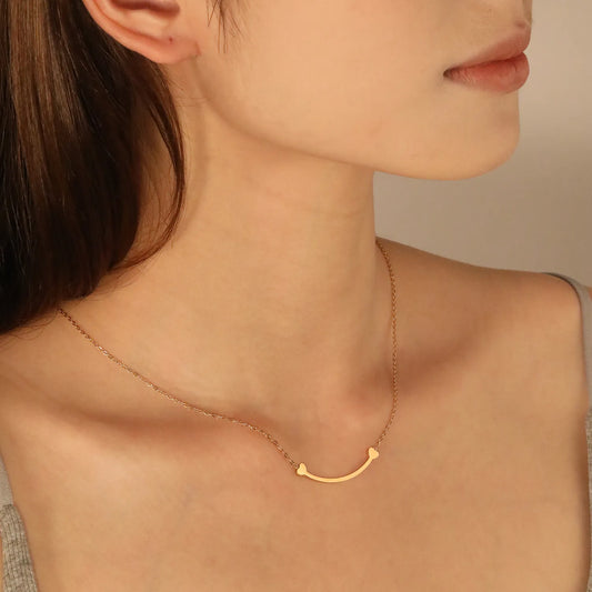 Stainless Steel Gold Arc Bone Jewelry - 9.2*36.7mm Pendant, 0.3mm Cross Link Chain, 45+5cm Necklace with 6mm Disk