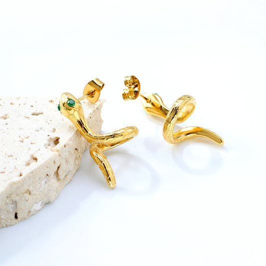 Gothic Snake-Shaped Stud Earrings - Stainless Steel Hypoallergenic Jewelry