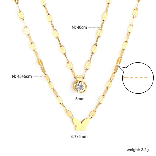 nickel-free Stainless Steel Double-Layer Chain with Butterfly Pendant