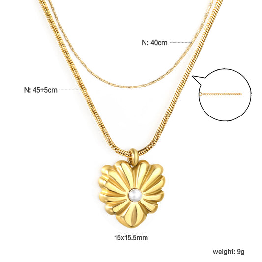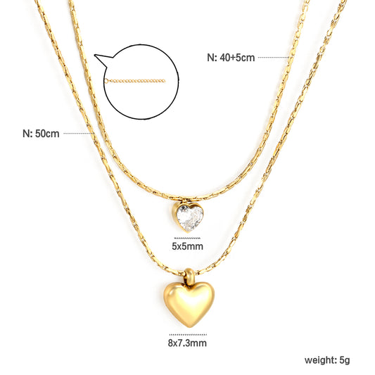 Stainless Steel Double-Layer Chain with Heart Pendant Waterproof Ason Jewelry
