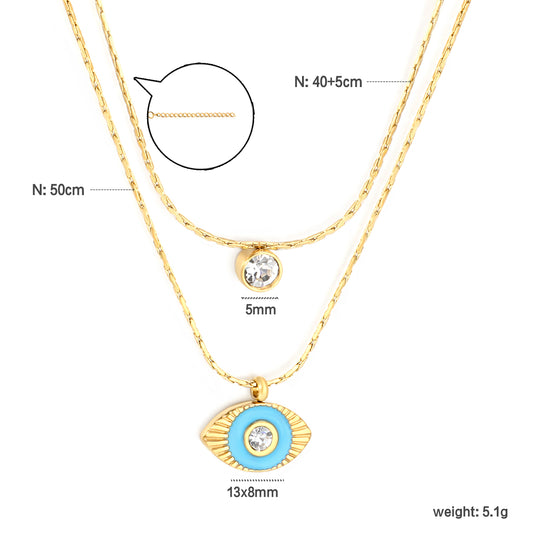 Stainless Steel Double-Layer Chain with Eye Pendant 18k gold plated