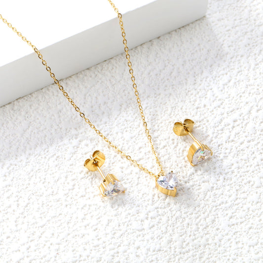 Heart-shaped white zirconium set Gold-colored earrings: 6mm Pendant: 6mm 0.3 cross chain * 40 +5cm +6mm round plate