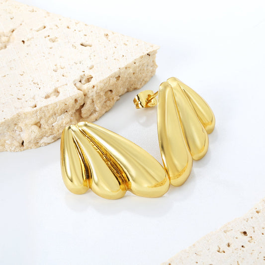24*45mm Tri-blade (left and right) stud earrings Gold color