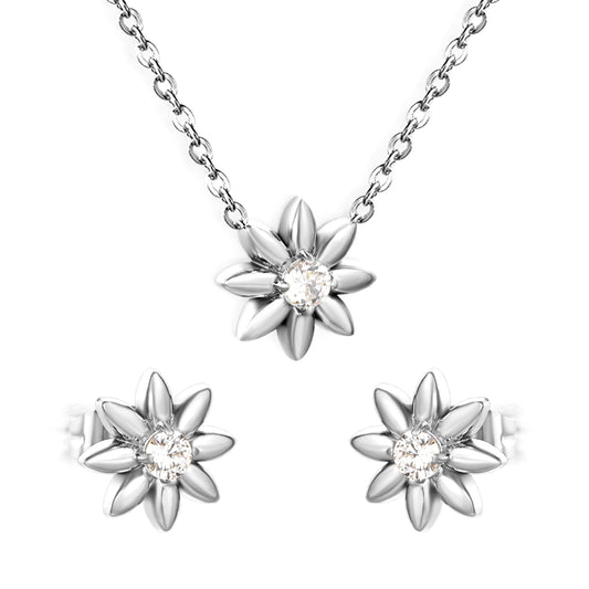 18K Gold Plated Sunflower Jewelry Set | Stainless Steel CZ Crystal Necklace & Earrings | Hypoallergenic Floral Jewelry for Women