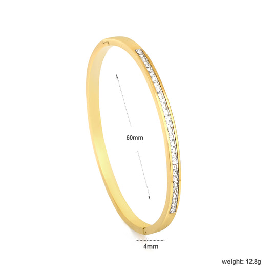 Gold-tone hard bracelet with a circle of diamonds in the center