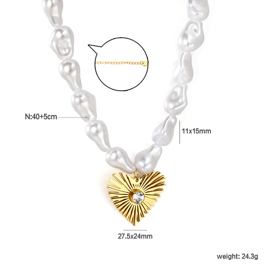 Wholesale Stainless Steel Heart Pendant on Baroque Pearl Chain | Trendy Jewelry