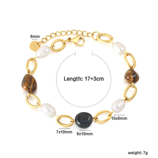 Wholesale Tiger's Eye Bracelet with Freshwater Pearl | Waterproof Hypoallergic Stainless Steel Beaded Chain | Natural Stone Jewelry