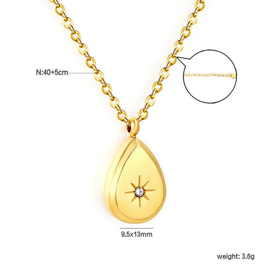 Gold Teardrop Locket Necklace with Starburst CZ | Stainless Steel Jewelry