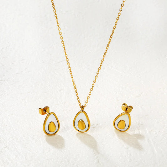 Avocado Enamel Necklace & Earring Set | Wholesale Bulk Order | 40+5cm | 18K Gold Plated| MOQ 12 | Stainless Steel Jewelry Set