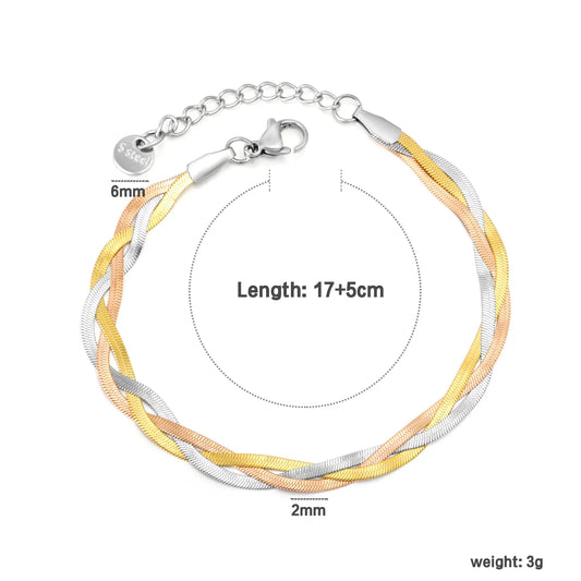 Wholesale 17+5cm Three-Tone Braided Snake Chain Bracelet | Stainless Steel MOQ 12