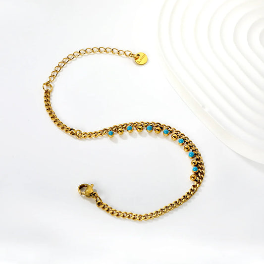 Wholesale 17+5cm Gold Turquoise Accent Charm Bracelet | 18K Gold Plated | Stainless Steel Jewelry | MOQ 12