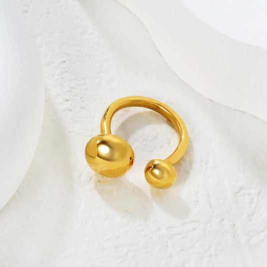 Wholesale Size 7 Gold Double-Ball Open Cuff Ring | 18K Gold Plated | Minimalist Statement Jewelry