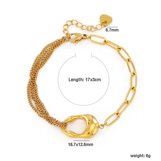 18K Gold Asymmetric Bracelet (Multi-Chain + Organic Link) | 17+3cm Adjustable | Wholesale Statement Mixed-Design | MOQ 12
