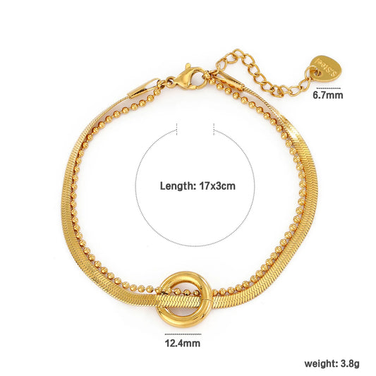 Multi-Texture Layered 18K Gold Plated Bracelet | 17+3cm Adjustable | 12.4mm Circle Accent | Wholesale Bulk Order (MOQ 12)