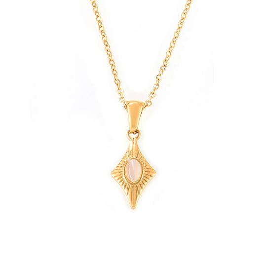 18K Gold Sunburst Star Pendant Necklace | 40+5cm Adjustable Chain | 9.6x19mm Pink Stone Accent | Wholesale (MOQ 12)