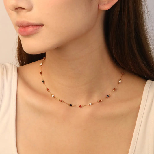 ✨ Wholesale Gold Beaded Necklace w/ 2mm Steel Beads + 3.2mm Stones & 10x3mm Tag | 40+5cm | Stainless Steel