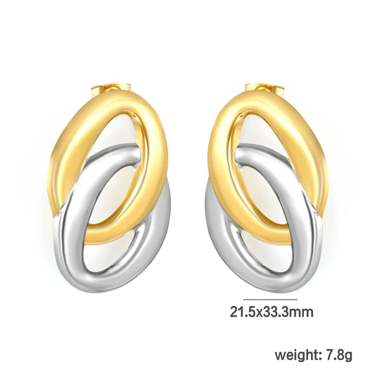✨ Wholesale Circle Stud Earrings | 21.5x33.3mm Two-Tone Hoop Design | Gold Plated Stainless Steel | Minimalist Geometric Jewelry Bulk
