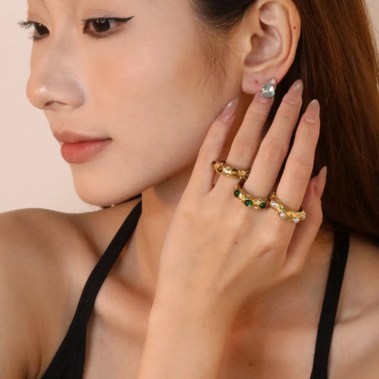 ✨ 18K Gold Plated Adjust Size With Premium Zircon/Natural Resins Ring Wholesale (MOQ 12+) | Stainless Steel Hypoallergenic Bands 🌍 | Stackable & Statement Rings