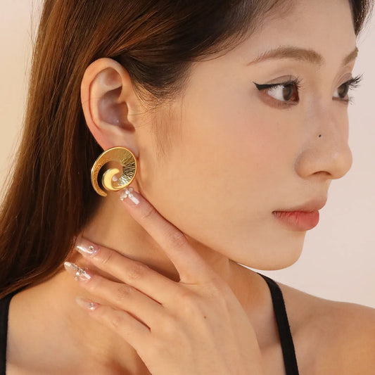 ✨ Wholesale 30x32mm Spiral Horn Studs | Gold Stainless Steel | Statement Earrings