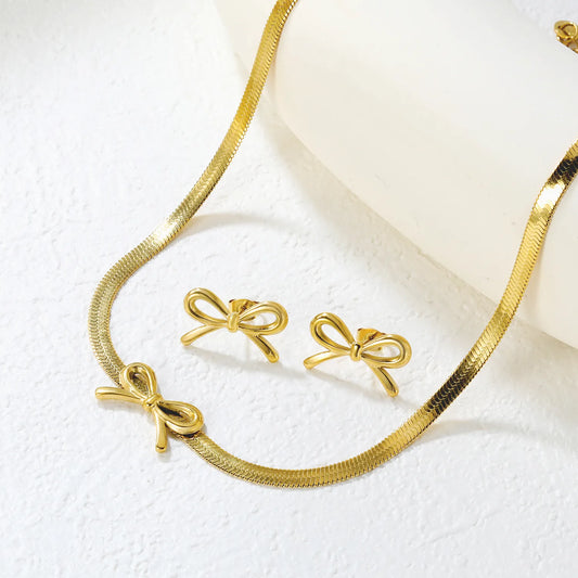 ✨ Wholesale Bow Set: 12x20mm Earrings + Pendant w/ Knife Chain | Stainless Steel/Gold | Hypoallergenic