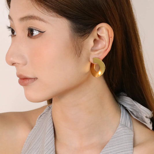✨ Wholesale Gold Stainless Steel U-Shape Earrings | 29x30mm Modern Saddle Design, Hypoallergenic Statement Earrings Bulk