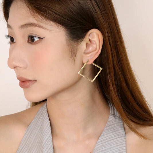 ✨ Wholesale Gold Stainless Steel Parallelogram Earrings | 29.33mm Geometric Studs, Hypoallergenic Modern Jewelry Bulk