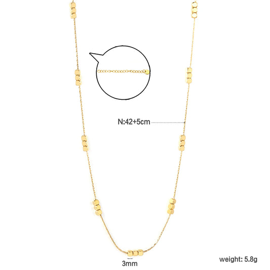 ✨ Wholesale Gold Stainless Steel Dice Charm Necklace | 3x3mm Cube Pendant, 0.3mm Cross Chain 42+5cm + 6mm Round Tag