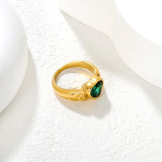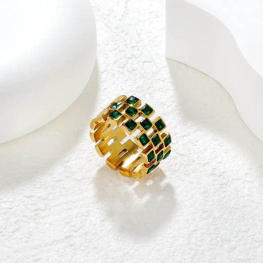✨ Wholesale Gold Stainless Steel Zirconia Ring | 8.7mm Band with White/Emerald Zirconia | Minimalist Stackable Ring