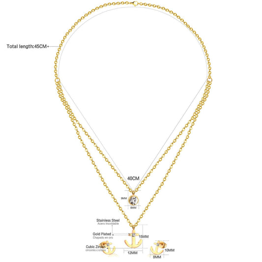Regular price $2.99 USDRegular priceUnit price / perSale price $2.99 USDGold/Steel Double Chains Necklace Women Accessories Stainless Steel Round Cubic Zirconia And Lock Pendant Necklace