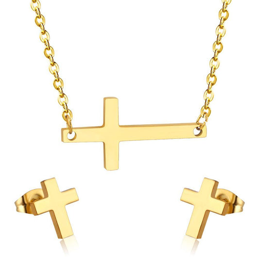 New Punk Jewelry Sets Stainless Steel Cross Necklace Gold Dubai Indian Earring Jewellery Sets For Women Accessories