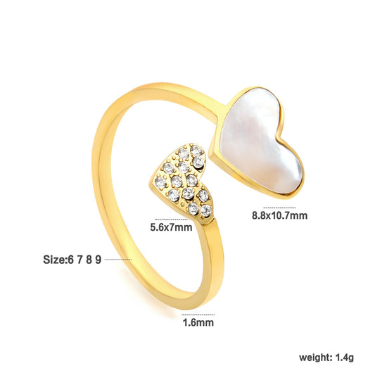 Regular price $3.15 USDRegular priceUnit price / perSale price $3.15 USDTwo Hearts Small Diamonds & Inlaid Shell Ring