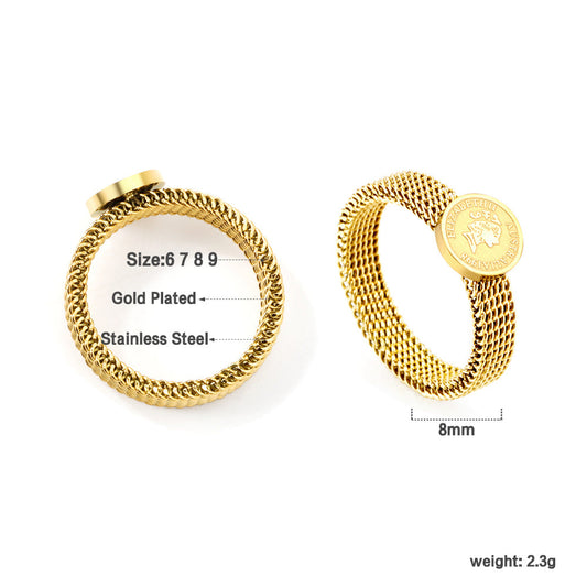 Fashion V-shaped stainless steel ring personalized retro trend 18k gold-plated wholesale