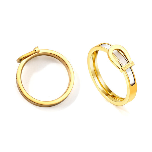 White mother-of-pearl horseshoe buckle belt buckle ring 18K gold fashion ring