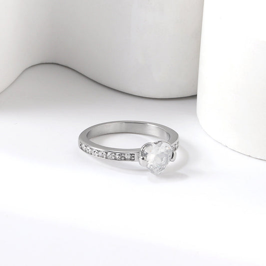 Light luxury style casting set full diamond ring women High-grade stainless steel jewelry