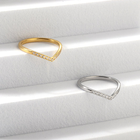 Fashion new step ladder set diamond ring flash zirconium stainless steel 18K gold index finger ring niche personality