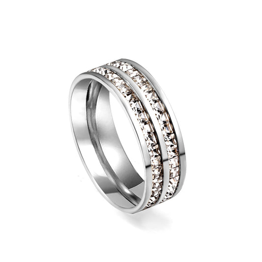 Temperament double layer diamond gear ring fashion personality double groove tapered ring