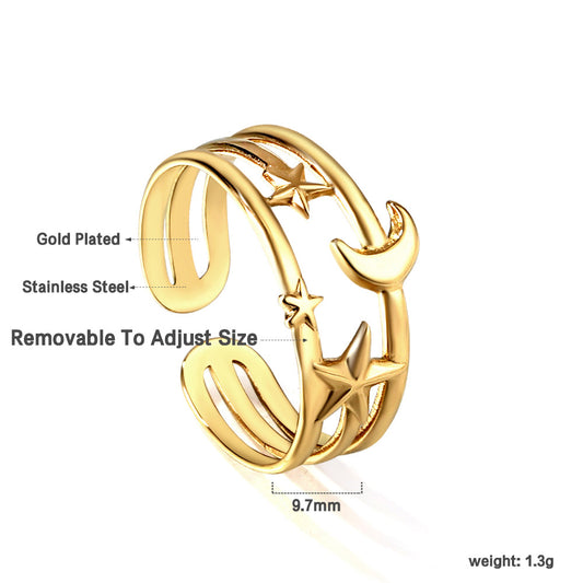 Pentagram stainless steel ring adjustable star moon stainless steel finger ring open ring