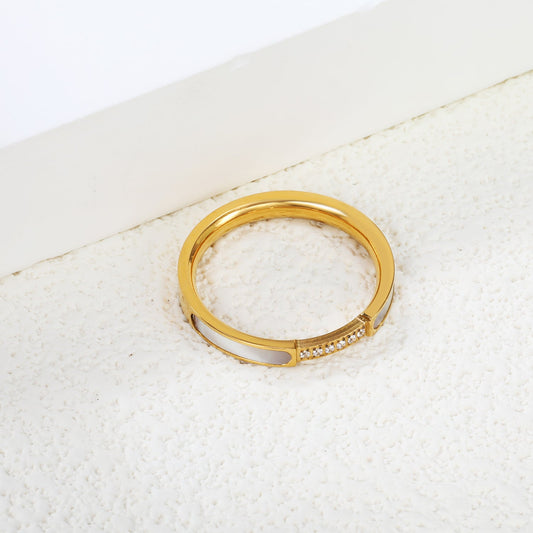 CNC white zirconia + Roman numerals single ring gold color