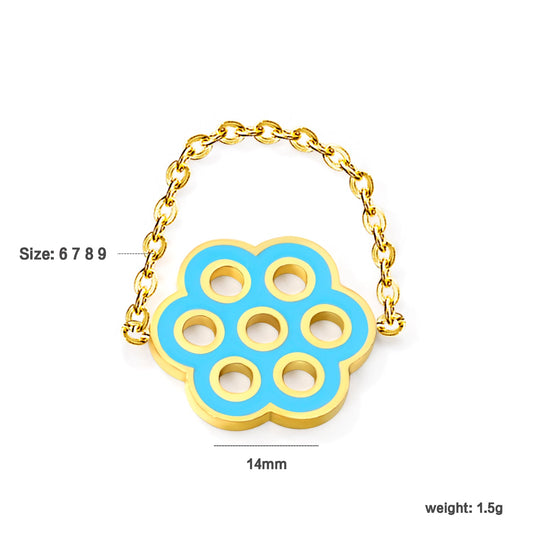 15mm Seven Round Flower with Blue Drip Soft Ring Gold
