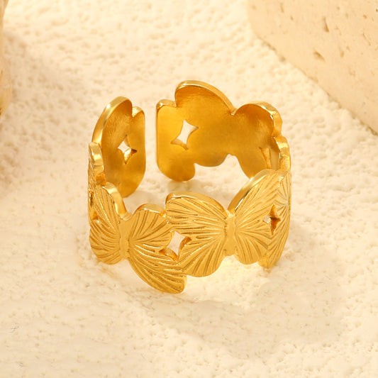 wholesale 12mm Butterfly Stainless Steel Ring Adjustable Opening Women Finger Ring