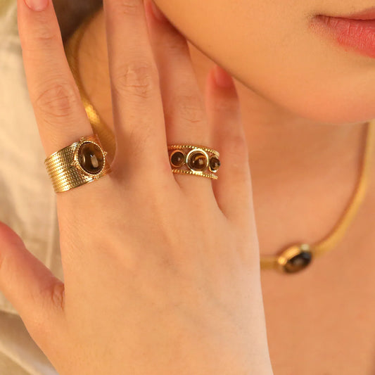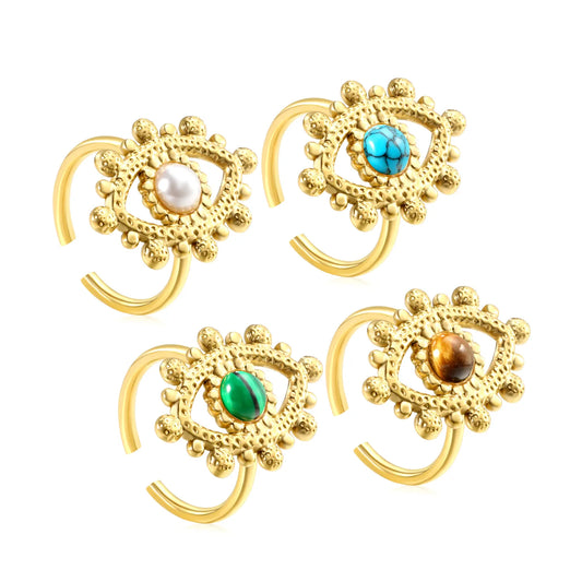18k gold plated Natural Resins Adjust Size Stainless Steel Rings Wholesale (MOQ 12+) | Hypoallergenic Fashion Rings 🌍 | Tarnish-Free