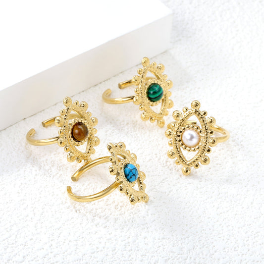 Regular price $3.27 USDRegular priceUnit price / perSale price $3.27 USD18.4*26.2mm Eye Split Ring Pearl/Turquoise/Malachite/ Golden 8