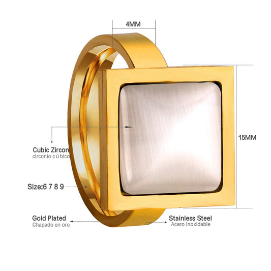 Brand New Stainless Steel Fashion Rings Opals Stone Ring Square Vintage Jewelry