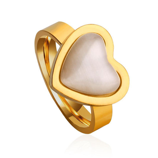24.4mm 18k Gold PVD Plated Stainless Steel White Shell Rings Unique Stylish