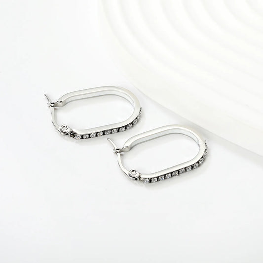 2.26*22mm Premium Stainless Steel White Rhinestone Silver-Plated Finish |Wholesale Crystal Oval Hoop Earrings | MOQ 12+